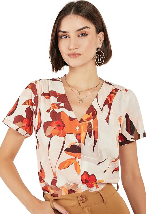 ALL YOURS Multicolor Printed Crepe Shirt Style Tops for Women|Tops for Women| Women Tops|Women Tops Western Latest| Crop Tops for Women Tops for Women|Tops for Girls|Crop Tops