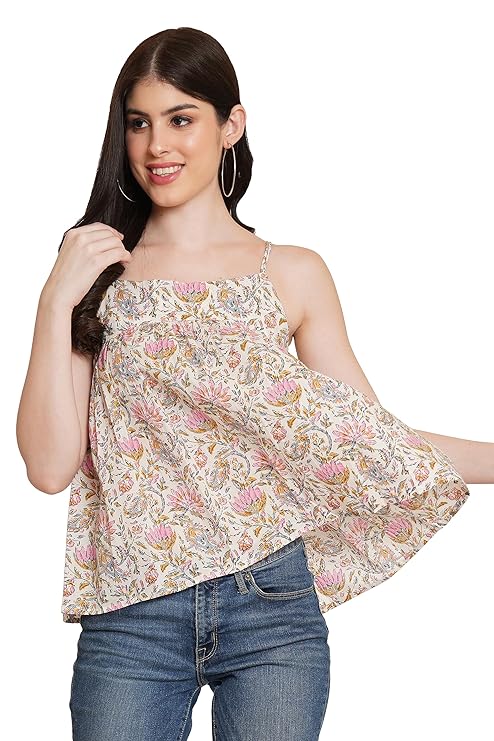 Amazon Brand - Anarva Jaipuri Cotton Sleeveless Printed Peplum Top for Women
